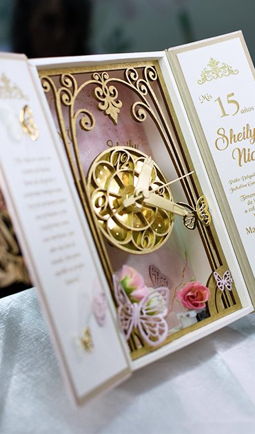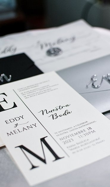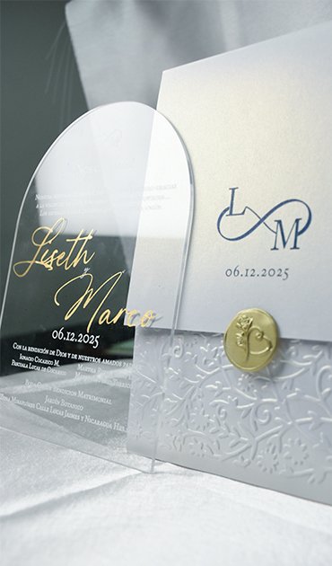 Creamos invitaciones con diseños únicos en función a los gustos y aficiones de los novios. Usamos materiales de alta calidad, y creamos invitaciones que son verdaderas obras de arte.