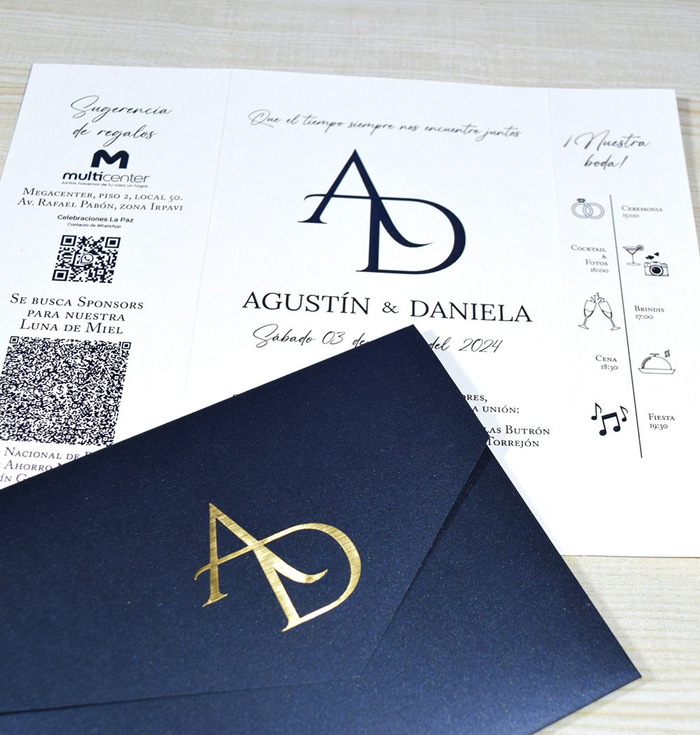 Una invitación pensada para emocionar, con todos los detalles visibles en la imagen y la versatilidad de adaptarse a los colores y acabados que tu evento requiera. Cada diseño se ajusta a tu esencia.